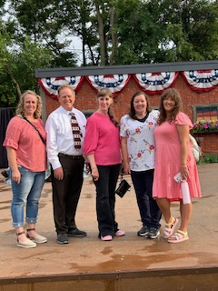 Marinda told ahead of time that Tiffany, her former Snow College Roommate and friend was coming to Nauvoo and wanted to see us. We did not know how or when we would connect. The moment came as we were giving a tour at the Joseph Smith Homestead. Tiffany and her husband, Dave, “happened” to find us as we made an exit with our group from the Joseph Smith Homestead. She and her children joined our group. Then at the end of the tour, her husband joined us. We got photos and reminisced about old times – when they came to visit us in Arizona – even before they were married.