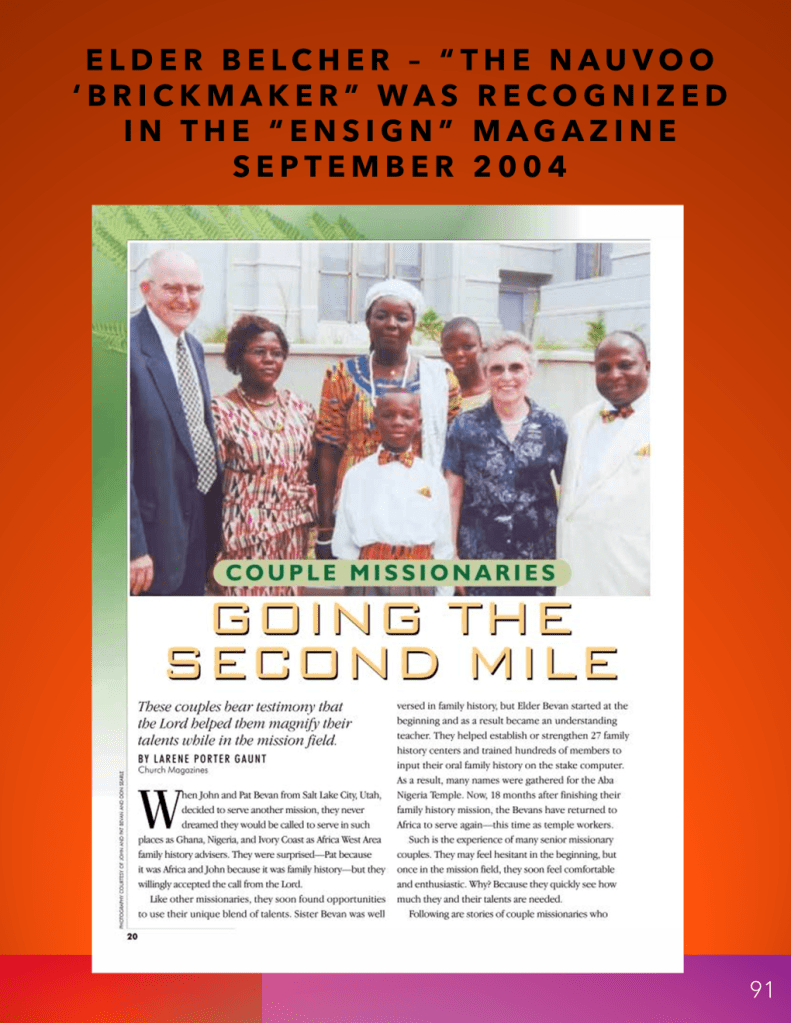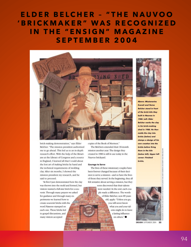 But, first, HAPPY BIRTHDAY TO Elder E.H. “Gramps” Belcher, the “Nauvoo Brickmaker”. Happy 110th Birthday!