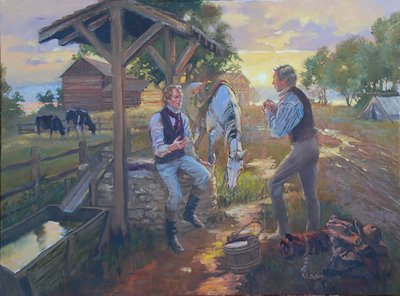 Painting by Glen Hopkinson, commissioned by a descendant of Simeon Dunn. After Simeon had walked about 500 miles from Michigan to Nauvoo Illinois, he met the Prophet Joseph Smith.
