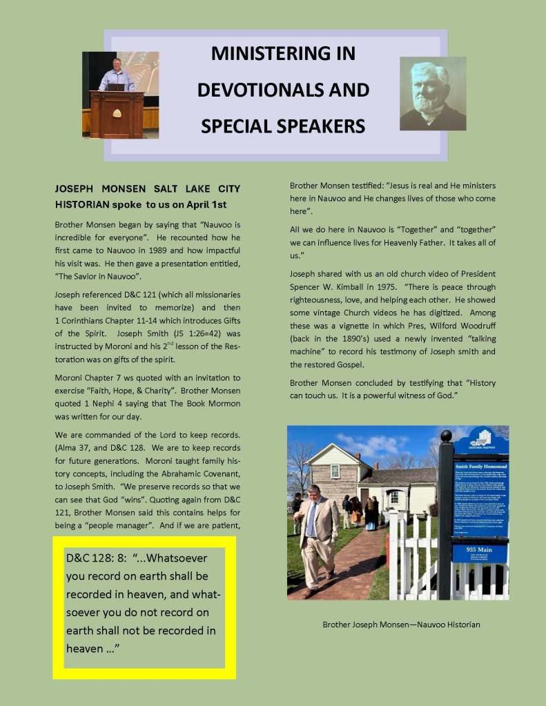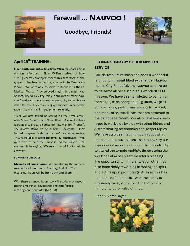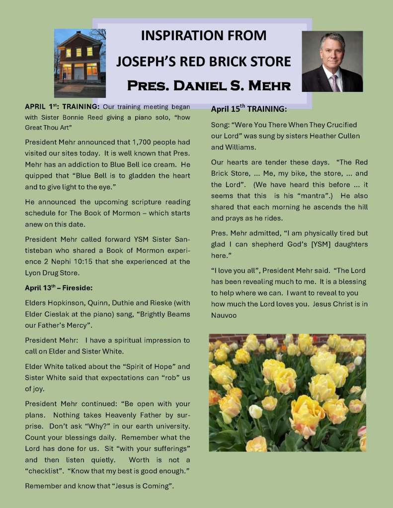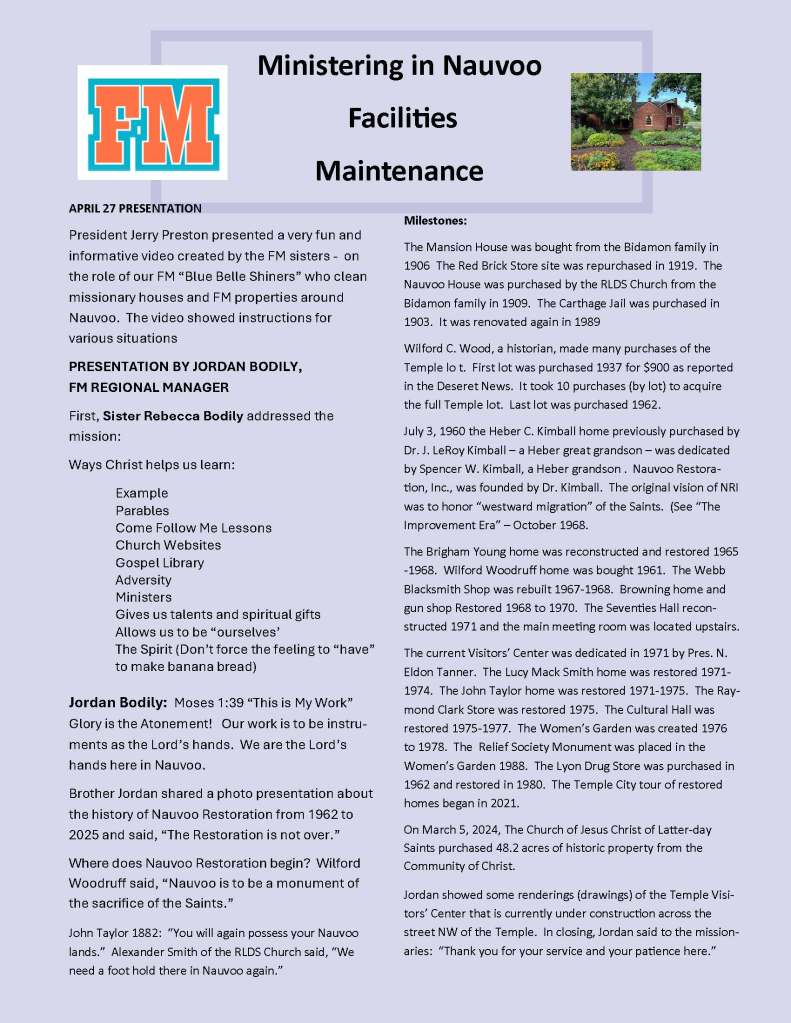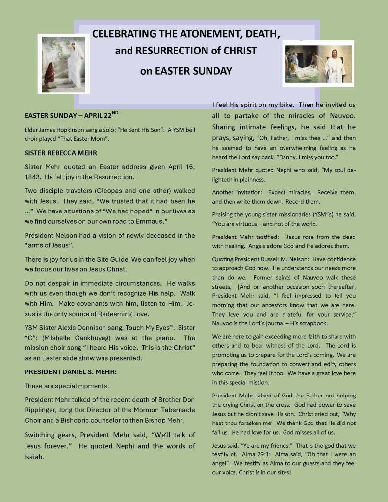 Sister Hunt and I work together to create the monthly history or newsletter for our Illinois Historic Sites mission. We enjoy this task and opportunity. We are pleased to share with you the history which we created for the month of April. Enjoy!