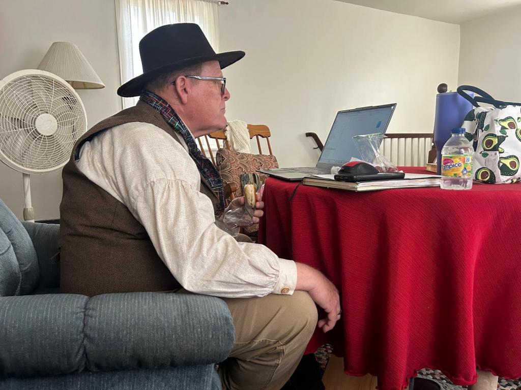 Above: Elder Kevin Hunt doing computer work between tours at the Browning Gun Shop in Nauvoo