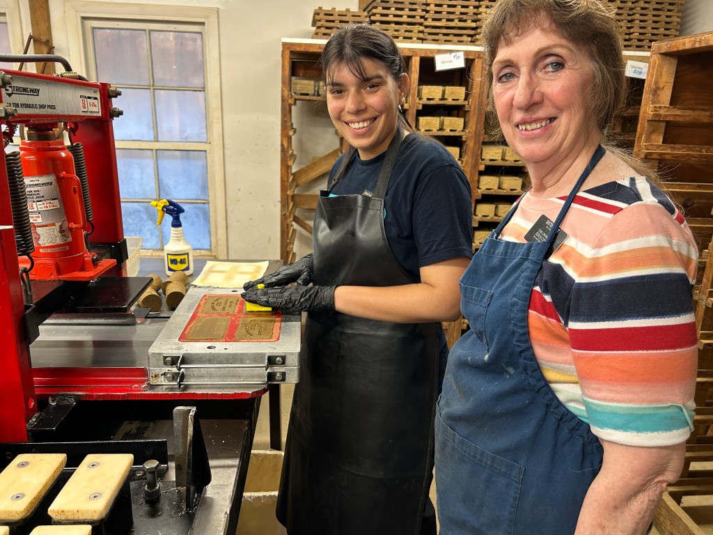 Above: Sister Hunt teaches brick making to young Sister Rivas