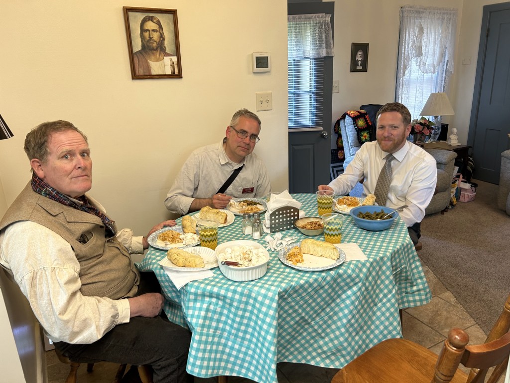 Above: Elder and Sister Hunt hosted Church History historians from Salt Lake City for a home-cooked meal (Curtis Ashton and Alex Stromberg)