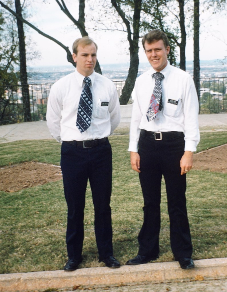 Above: Elder Craig Shaltes and Elder Kevin Hunt – young missionaries in Nauvoo 1975