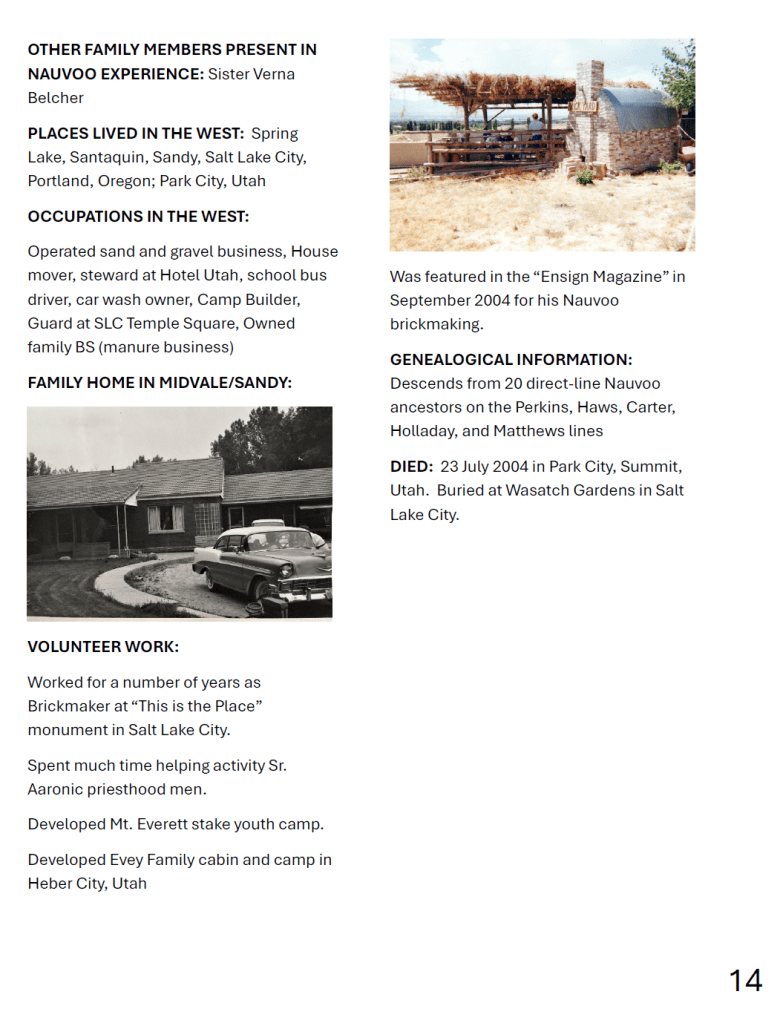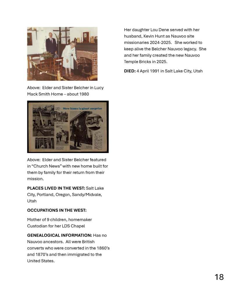 This is all so exciting. What a great tribute to the “Nauvoo Brickmaker”. We are happy that everything came together (though we didn’t plan it ahead) so that Elder Belcher can remembered for his work on the Nauvoo Brick. We are in awe for the many miracles that came together – for the Lord – as everything has come together. It has been such a great blessing opportunity for Sister Hunt and me to be a part of these miracles. And thus, the Belcher Brick Legacy continues.
