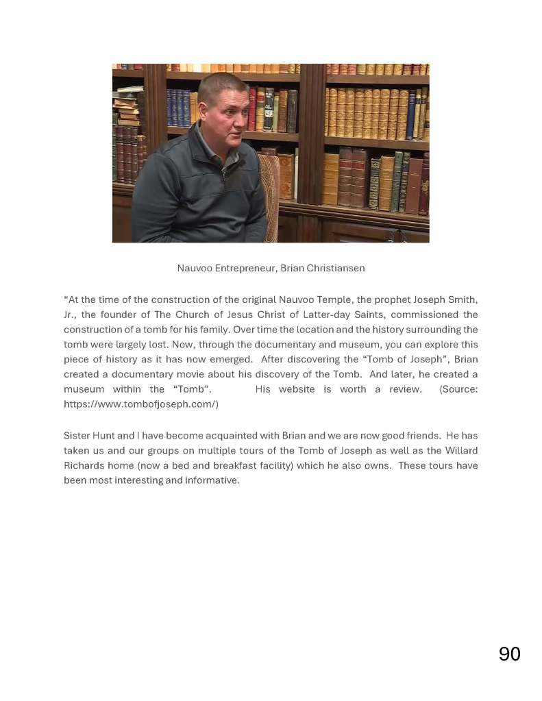 I will now try to cover many of the fun and interesting events of the past couple of months. I could make a quick little blog but there is so much going on here. Of course, I continue to maintain my 52-year practice of writing a detailed journal entry as I have for every day since that day back in May 1973). But, I see this blog as kind of my pictoral Nauvoo scrapbook (for future reference and memory enjoyment) … so I will cover a lot of our Nauvoo time and space here. I also considered breaking it down into multiple blog articles. But per the old adage, “No matter how you chop up the pig, it is still the same pig.” (Is that an old adage, or did I just make that up?)