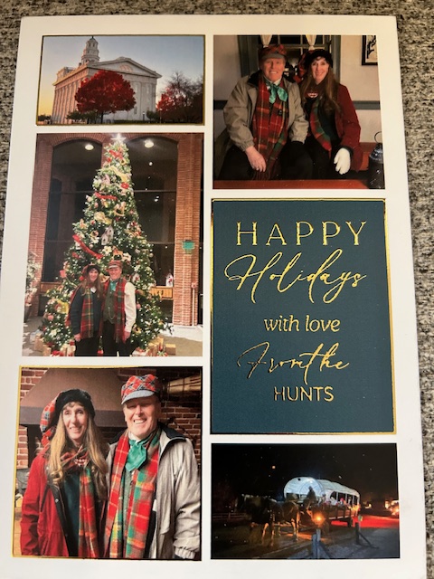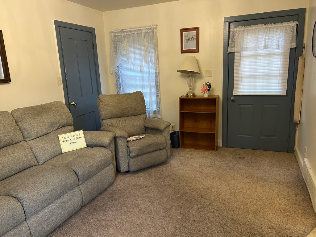 We also took a selfie out front of the house- with the Dunn home sign behind us – and holding our “Elder Kevin and Sister Lou Dene Hunt” sign that has been in our front window through our mission.