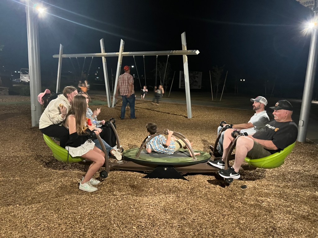 Marinda suggested that we go to a new park called “Moonlight Park” – in a new community that is ready to be built. This park proved to be a great place for our family gathering. We were there by ourselves (and the mosquitos) and this worked well. The kids were able to just run and chase as desired.