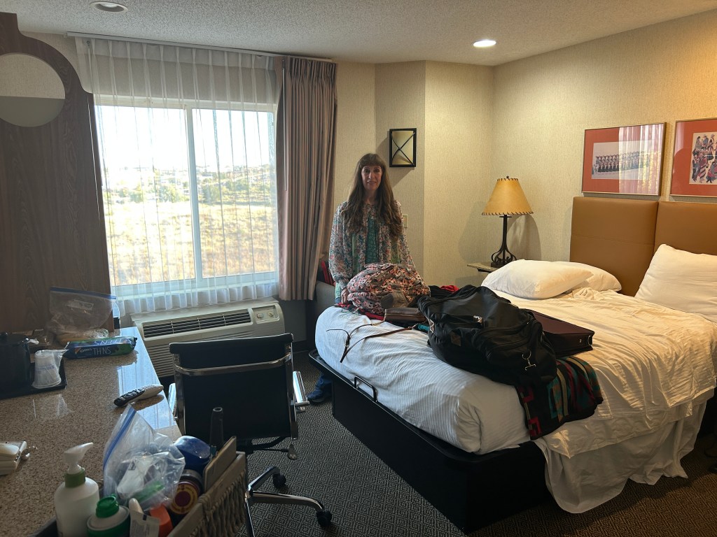 We awoke this morning at our usual time – me at 6:15 AM. I got up and got ready. I packed up my bathroom stuff. I then packed my 3-day suitcase for the trip.