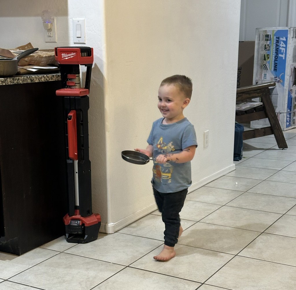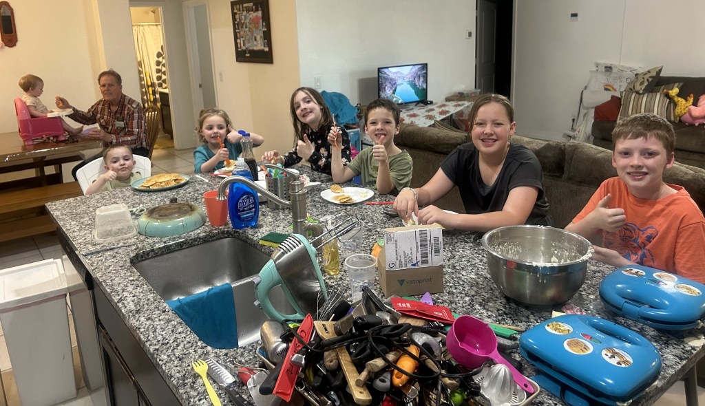I decided to make some of my famous punch for the meal. It was fun to see the reaction of the grandchildren as they realized that I was making the punch that they have missed for 18 months. They all got SUPER excited. I let Jett be the man on the giant whisk to stir the pot. All of the kids would have liked this task.