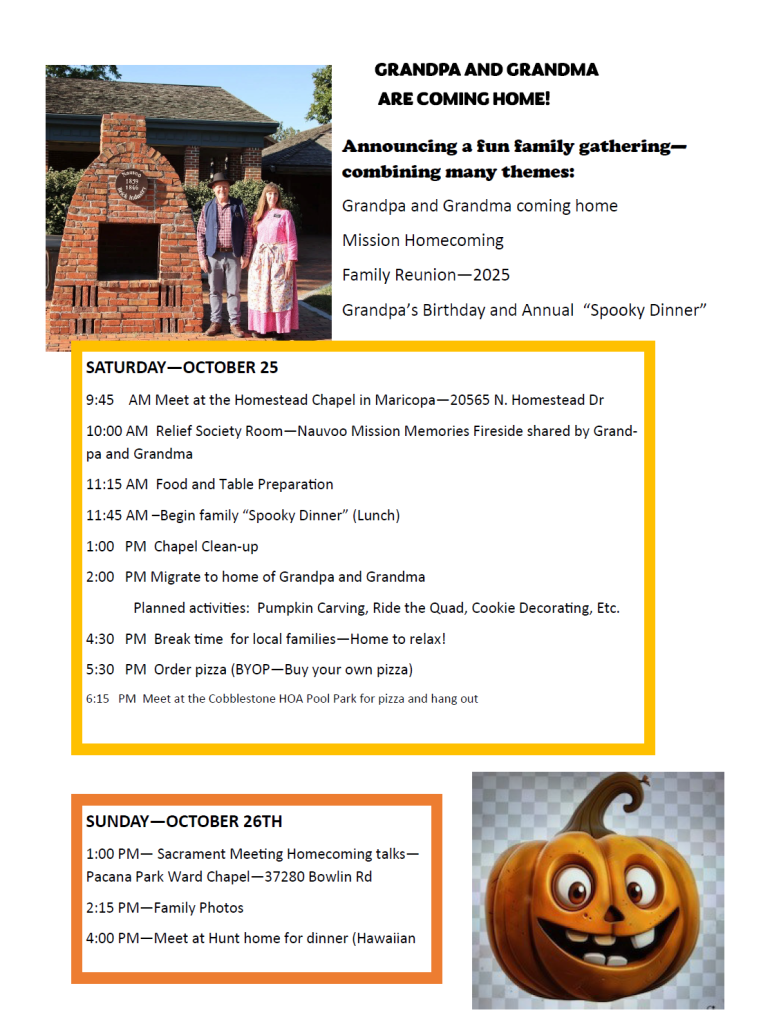 Our mission was actually scheduled to end on October 1st. That is when most our April 1st 2024 MTC group departed. We extended our mission by 13 days to accommodate our many families who wanted to come – planning their trips around their Arizona school fall breaks.