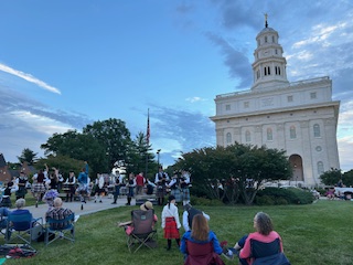 On this night with the “flat group” we hurried home to join another call. Bryson and his lady made a trip from Utah and were hanging out with the Arizona family. And while they were there, we took the opportunity to stage our traditional “family council” meeting with them. This is a 3-generation tradition that came to us from Lou’s Belcher family. When a new person wants to become an “out-law” in the family, they must first attend a “family council”. In this infamous gathering, all family members fire questions at the incoming person – like, “How many children are you going to have?”, “Who will take out the garbage”, and “Do you like the toilet paper to unwrap from the top – or from the bottom”. These are all earth-shaking and vital questions. (And incidentally, Sister Hunt has long been a toilet paper bottom-loader but here in Nauvoo, she has seen the error of her ways and she generally now loads it to be a top-loader. Wow! Is that another Nauvoo miracle?