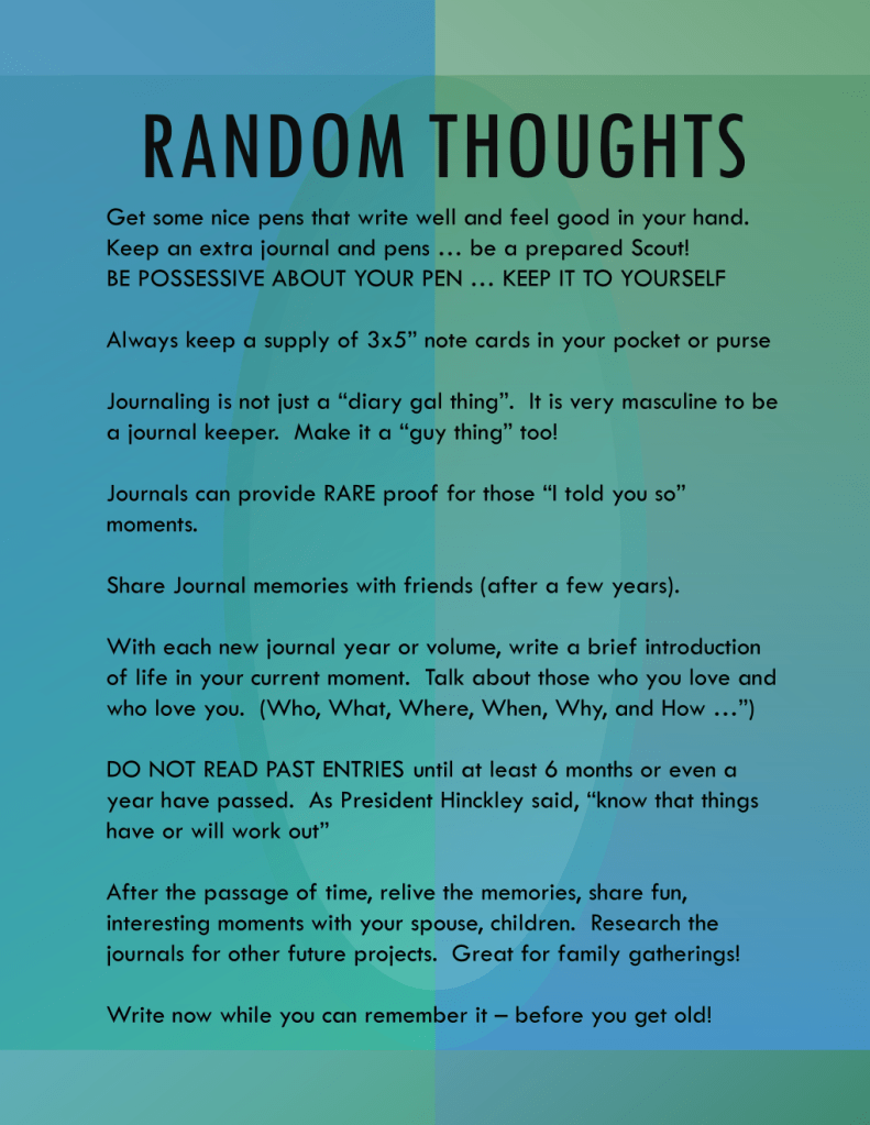 JOURNALS, PERSONAL AND FAMILY HISTORY