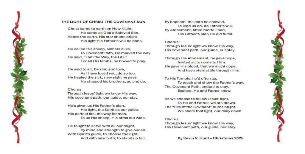 Sister Hunt and I were happy for another opportunity to serve in the Lord’s Kingdom – and to recognize Him and Father for the divine birth of the baby Jesus – who later became our Savior and Redeemer.