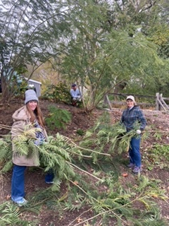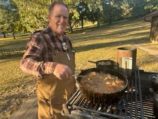 I handcrafted a special gift for Sister Hunt. Every time we have served in the Scovil Bakery, she has been enamored over a carved stick that was used in the pioneer era to scoop up dougnuts as they have cooked in the oil. I determined that I would carve the stick that she has been wanting. A couple of months ago, a tree in our “backyard” mostly fell. When FM came to work on reoving the fallen limbs, I found a bit of a limb that I thought would work well. An FM Elder helped me cut the desired piece.