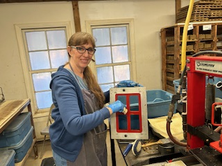 Sister Hunt teaching brickmaking to Historians at Family Livingt Center