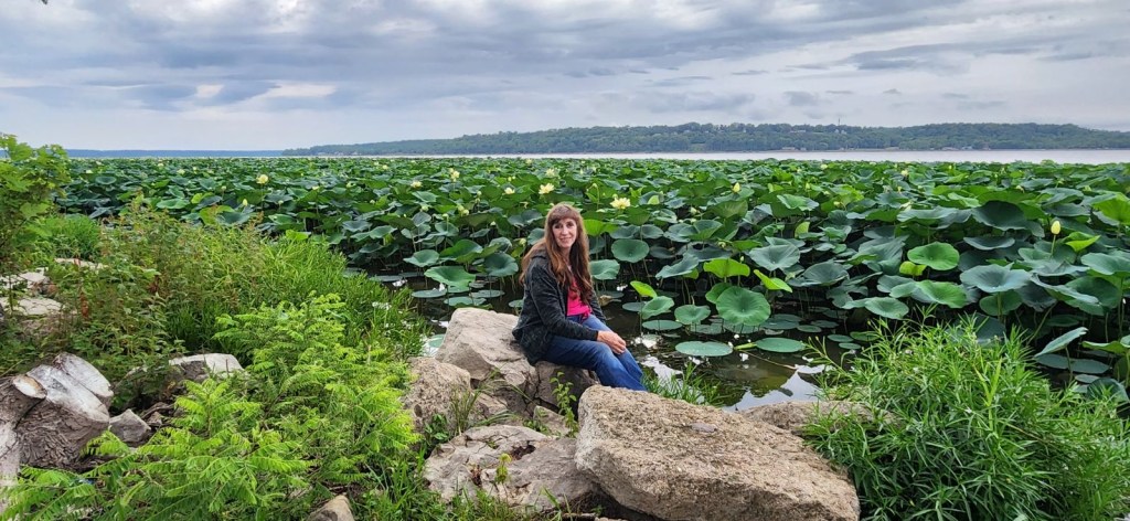 Lou found a “current bush” (right there at our seat) so she was able to curl her hair as usual. She looked good.